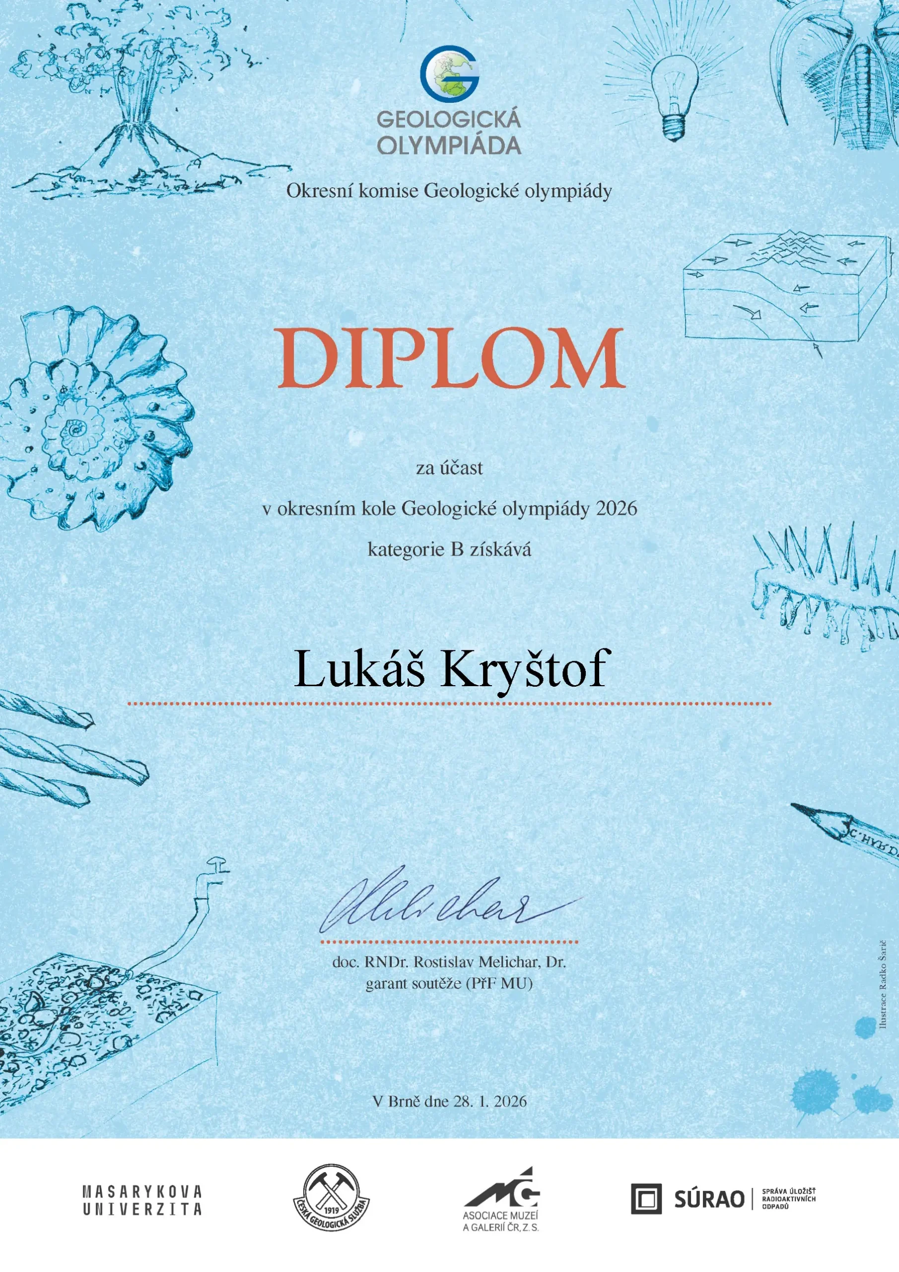 V kategorii B, která je určena žákům vyššího gymnázia (1. – 4. ročníků SŠ), se Lukáš Kryštof ze 3.D umístil na 7. místě a stal se tak úspěšným řešitel.